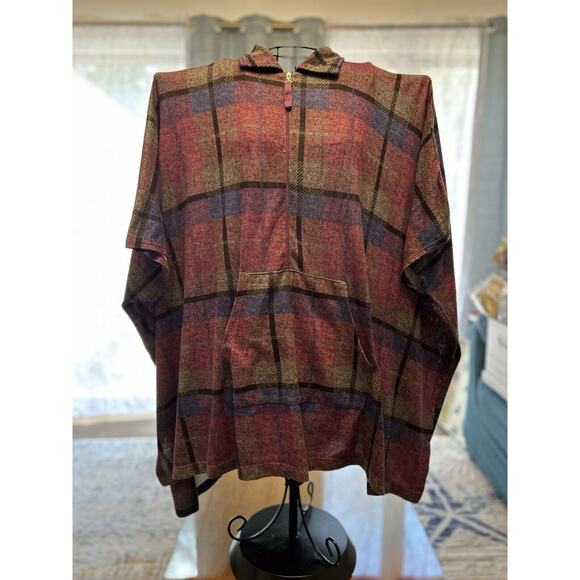 STAN HERMAN XS Purple Plaid Super Soft Luxe Knit Half Zip Poncho Pockets