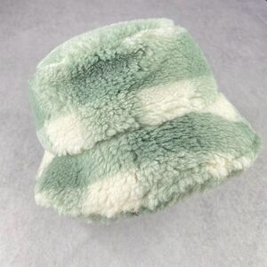 STAND STUDIO Wera Bucket Hat Womens Size M Green Off White Wool Blend Sherpa