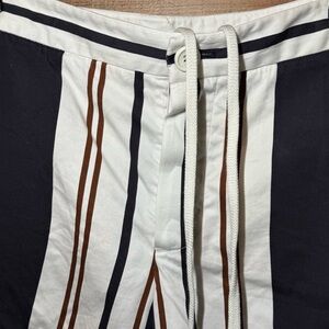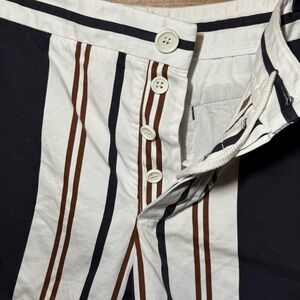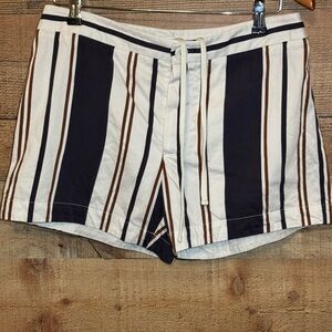 James Perse women’s button fly striped shorts size 27. Pre-loved condition. Inner drawstring. Buttoned back pockets. 100% cotton.