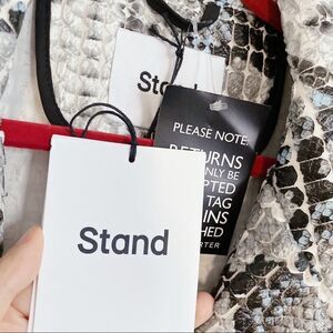 This white, grey and blue Stand Tasia python print coat features a notched lapel, long sleeves, a front button opening and a knee-length hem. Embrace your reptilian side and slip into this pale Stand snakeskin coat before you head out to work. Suddenly those intimidating board meetings aren’t so bad, ha? It’s so true - you have to dress the part (just keep your fangs to yourself).