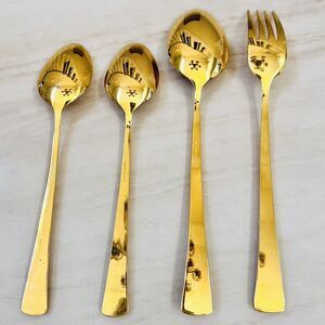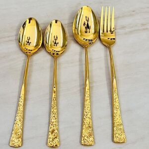 STANLEY ROBERTS Golden Flower Garden (Gold Electroplate) 4pc Flatware Spoon Fork