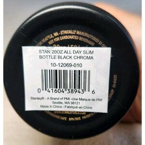 The STANLEY Slim Bottle in 20 oz size is a sleek black water bottle with a chrome pattern and iridescent finish. This bottle is made of stainless steel and is designed for cold beverages. It comes with a screw top lid and a straw for easy sipping. With features like insulation and a handle, this bottle is perfect for teens, boys, adults, girls, and kids. The dishwasher-safe bottle is a stylish and practical choice for on-the-go hydration.