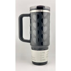 BRAND NEW LIMITED EDITION STANLEY VALENTINE'S QUENCHER PROTOUR FLIP STRAW TUMBLER, 30OZ- BLACK LOVELY HEARTS