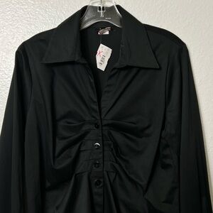STAPLES BLACK LONG SLEEVE WOMEN BUTTON UP BLACK BLOUSE SIZE LARGE NEW
