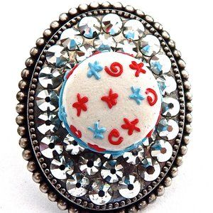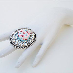 STAR CAKE SILVER SWAROVSKI STONE RING