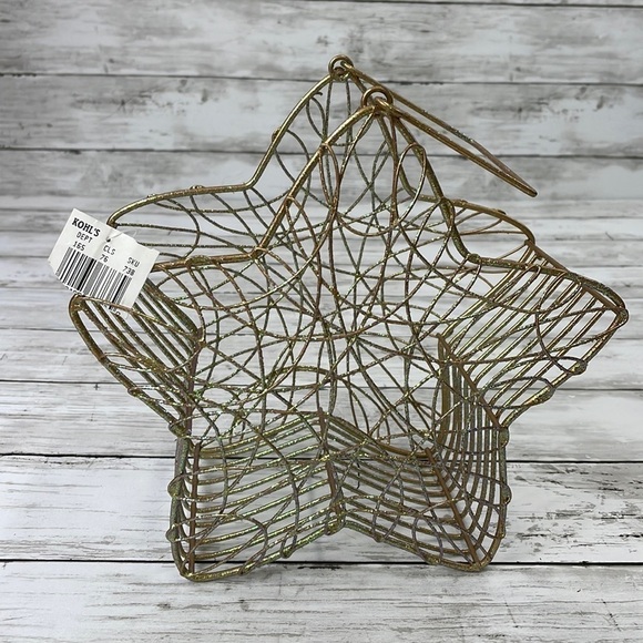 STAR HOLIDAY BASKET GOLD/GREEN GLITTER NWT Excellent condition Smoke free home See measurements in the pictures