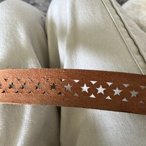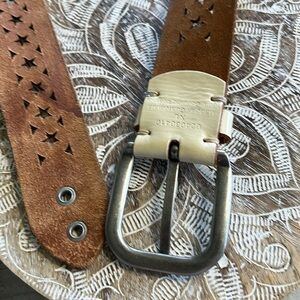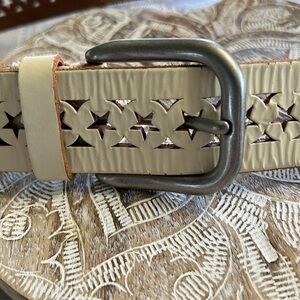 STAR PUNCHED IVORY LEATHER BELT AND SILVER BUCKLE SIZE XL