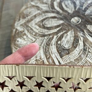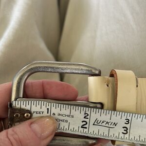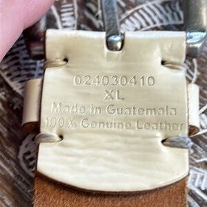 Star punched ivory cream, leather belt made in Guatemala and great condition besides wear on edges as shown in pics buckles measurement in pics it’s XL belt is 43” in length and 1/12 inches wide check all pics. Comment with any questions.