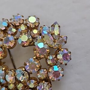STAR Vintage AB Pinkish Crystal Glass Beads Pendant & Brooch. This is an estate find and is beautiful & in great condition. This is also signed Austria.