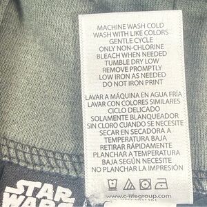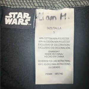 This Star Wars boys' hoodie brings the Dark Side to everyday wear with its detailed Darth Vader costume-inspired design. Featuring bold printed control panel graphics, black and gray color blocking, and a cozy hood, it perfectly blends cosplay with comfort. The soft cotton-blend fabric keeps it easy to wear, while the zip-up front makes dressing simple. Great for everyday play, costumes, or layering on cooler days. Name written on the interior tag and some minor wear on the front, but overall excellent preowned condition.