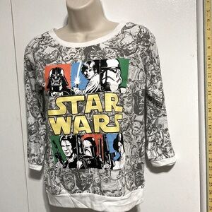 STAR WARS Freeze Cropped Boat Neck Graphic Long Sleeve Top Womens Small Medium