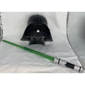 STAR WARS HASBRO GREEN LIGHT SABER 2018 WORKS & DARTH VADER MASK