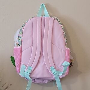 Disney Star Wars The Child Yoda 5-piece backpack includes carabiner, scrunchie, rubber dangle keychain, lunch kit and backpack. Lunch kit measures approximately 8"x9", 16" including ears, backpack is 16"x12"x4"