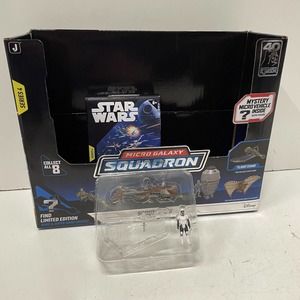 Experience the thrill of the galaxy with this STAR WARS Micro Galaxy Squadron Mystery Series 4 Biker Scout Speeder Bike Endor action figure set. Join forces with the Biker Scout Trooper as he rides into battle on his motorbike and take on the Empire's toughest foes. The ABS plastic and plastic construction of the figure stand, mixed lot, and mask/helmet ensure durability, while the miniature size and boxed packaging make this a collector's dream.