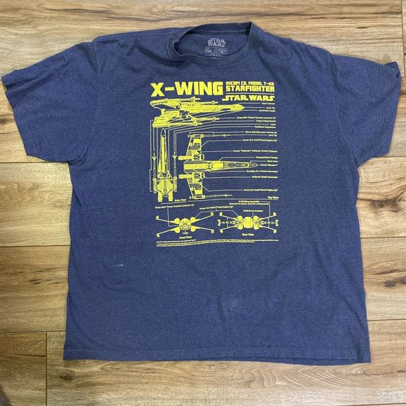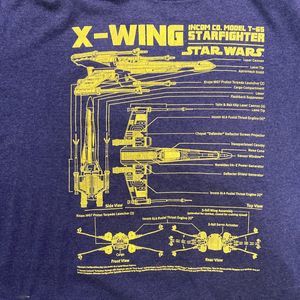 STAR WARS X-WING T-65 STARFIGHTER Blueprint Schematic T-Shirt Men's 2XL Blue