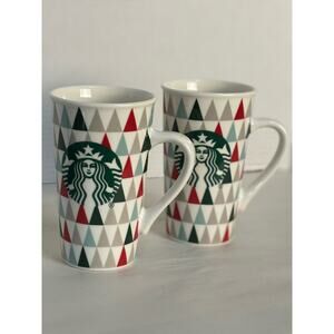 STARBUCKS (2) Tall Coffee/Tea/Cocoa Mugs Holiday/Christmas Tree Triangles 16 oz