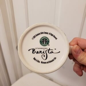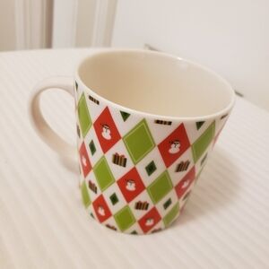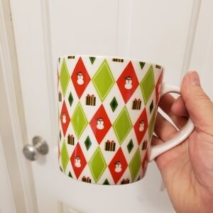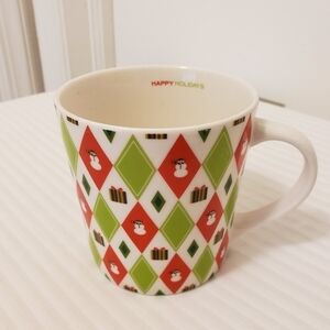 STARBUCKS 2003 Happy Holidays Barista red & chartreuse green argyle snowman mug