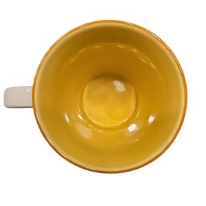 Design: White ceramic with a yellow interior and an orange rim. It has a graphic of a percolator coffee pot and the "Starbucks Coffee Company" logo on the exterior.