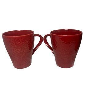 STARBUCKS 2009 Design House Stockholm Embossed Red Hearts 12 Oz Cup/Mug Set Of 2