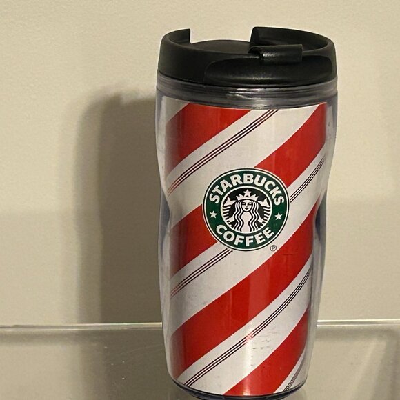 You are Looking at a STARBUCKS Candy Cane Striped Holiday Travel Tumbler. Features a Red and White Candy Cane Striped Design. It is an Insulated, Double-Wall mug with a Black Twist-off Lid.