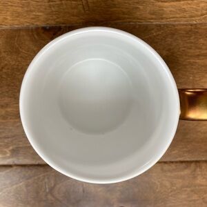 STARBUCKS 2013 White Geometric Coffee Mug Bronze Handle Cup