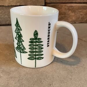 Starbucks 2015 white 12 oz coffe mug with green trees. No chips, cracks, or stains.