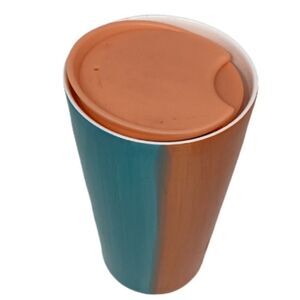 STARBUCKS 2020 CERAMIC 12 Oz - TRAVEL MUG W/ LID Green Red Ombre Coffee Summer