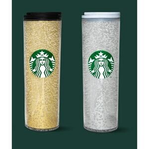 STARBUCKS 2020 Holiday Sparkling Snow bubbles silver gold hot tumblers 16 oz NEW
