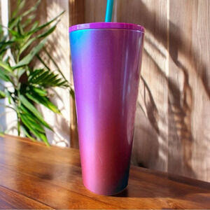 STARBUCKS 24oz Purple Pink Turquoise Ombré Metal 2022 Tumbler w/ Straw