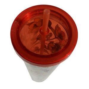 STARBUCKS Acrylic VENTI Cold Cup Tumbler POPPY FLOWERS Red Yellow Orange 24 Oz.