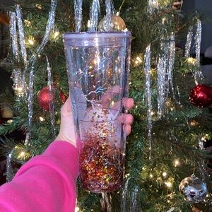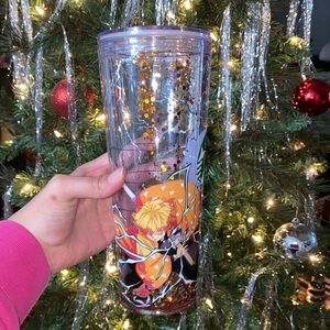Custom Demon Slayer Zenitsu cup. It does have floating confetti. Features large decal of Zenitsu and all over holographic thunder bolts. Original Starbucks product. Will include a green straw.