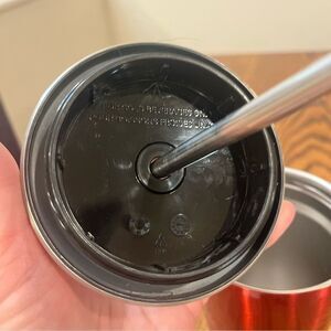 STARBUCKS DUO RARE RED 16 oz TUMBLER MUG CUP WITH STAINLESS STEEL STRAW 2014