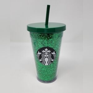STARBUCKS GREEN GLITTER GRANDE ICED COFFEE COLD BEVERAGE TUMBLER 2018 HOLIDAY