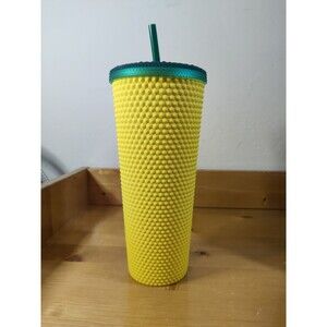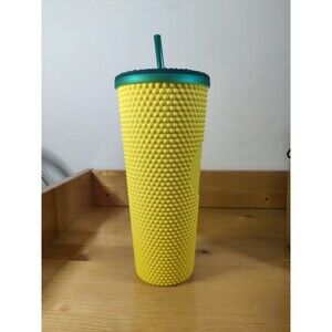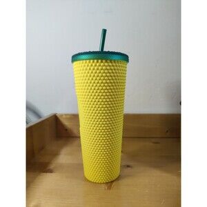 The Starbucks Hawaii Collection 2021 Pineapple Yellow Studded 24 oz Tumbler is a collectible advertising item featuring the iconic Starbucks brand. This original tumbler in a vibrant yellow color is a featured refinement for coffee and tea enthusiasts. Perfect for enjoying your favorite beverages on the go, this tumbler is a must-have for any Starbucks fan looking to add a unique and eye-catching piece to their collection.