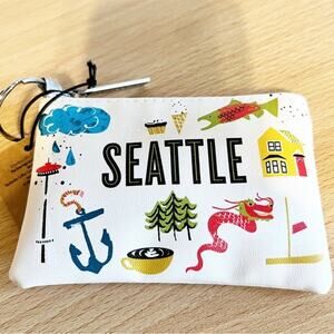 STARBUCKS Card Pouch: This zippered card pouch is perfect for your Starbucks gift cards, loose change, earbuds, etc. Features iconic Seattle graphics on the front and back and has a keyring attached to the zipper pull for convenience. This pouch is brand new and retails for $8.95. 4.5H x 2.75H