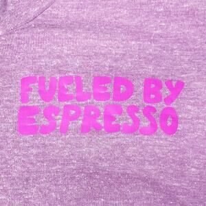 Heathered mauve purple-pink with "Fueled By Espresso" printed on front