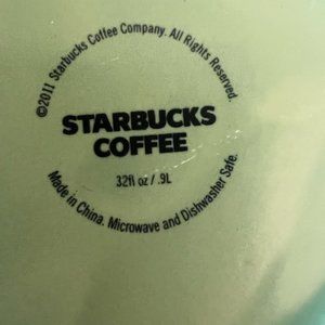 Sleek and elegant design with a sage green matte finish. Measures 7” tall. Holds 32 fluid oz. Microwave and dishwasher safe. From Starbucks Coffee Company; 2011