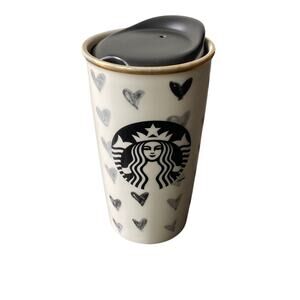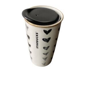 STARBUCKS Tumbler Ceramic Black Hearts 12oz Coffee