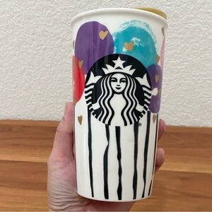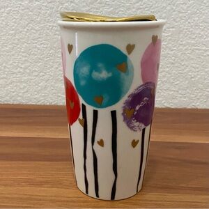 STARBUCKS Valentine Balloons Love & Hearts Ceramic Traveler Tumbler Mug 12oz