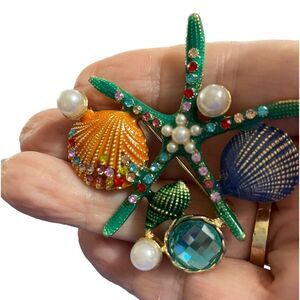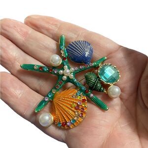 Stunning brooch for the beach lover Starfish, shells, faux pearls and rhinestones