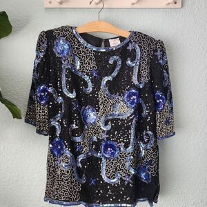 STARFISH mermaid embroidery embellish silk blouse