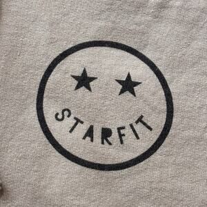 STARFIT Tan Hooded Sweatshirt Kangaroo Pocket Smiley Face Starry Eyes Logo Women's Size Large