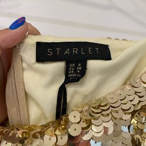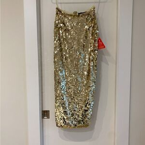 STARLET Sequin Hearts Liquid Gold Sequin High waist Midi Pencil skirt ASOS 4 NWT