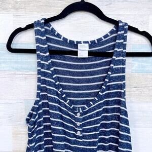 STARS ABOVE Soft Stretchy Hacci Knit Pajama Romper Blue White Striped Womens XS