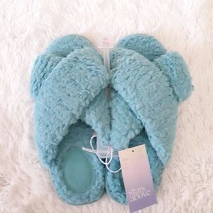STARS ABOVE Women's Fuzzy Cross Front Slide Slippers (Size M / 7-8) ~ NEW!!!