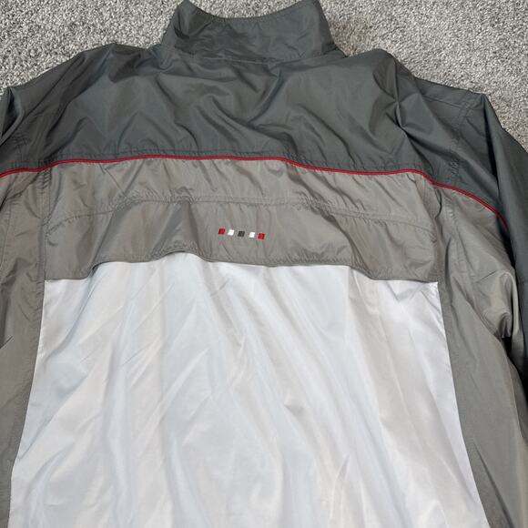 The product is a Starter lined jacket for men in size large, featuring a solid pattern in multi-color. Made of polyester, this basic jacket is lightweight and water-resistant, making it a practical choice for various weather conditions. Manufactured in Bangladesh, this rare and sought-after jacket is a must-have for any fashion-forward man looking to add a unique and stylish piece to their wardrobe.