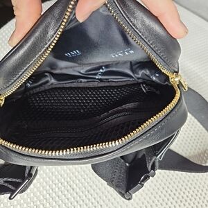 State genuine leather updated fashion fanny bag on black leather, good pre-owned condition.