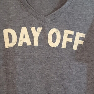 Casual blue tee with 'Day Off' print. Comfortable short sleeves. Perfect for relaxed days.