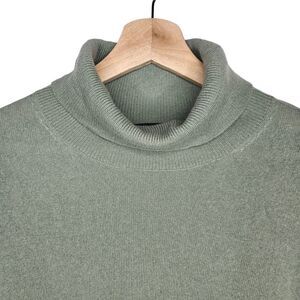 STATE CASHMERE Green Turtleneck Sweater Dolman High Low Hem Relaxed Fit