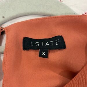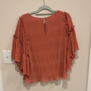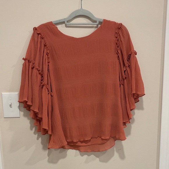 Chic rust blouse with ruffled sleeves. Ideal for versatile styling.